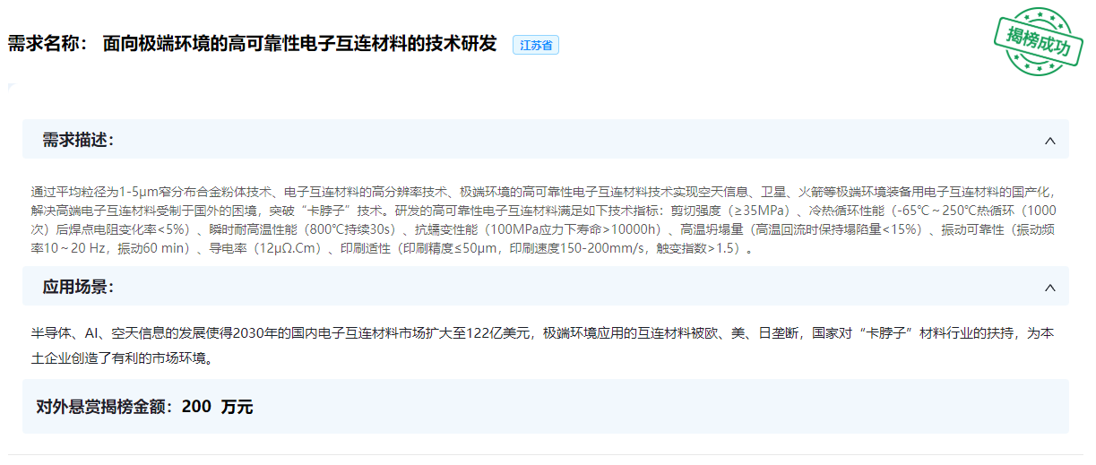 近日,上海市科技委、江苏省科技厅、浙江省科技厅、安徽省科技厅联合下发《关于开展2025年度长三角科技创新共同体联合攻关重点揭榜任务工作的通知》(沪科合【2025】23号)公示了揭榜任务清单。经过两轮严格筛选与专家评审,电光源材料研究所副所长陈鹏牵头的导电材料课题组与阜阳师范大学联合申报的“面向极端环境的高可靠性电子互连材料的技术研发”项目成功入选并获立项支持。