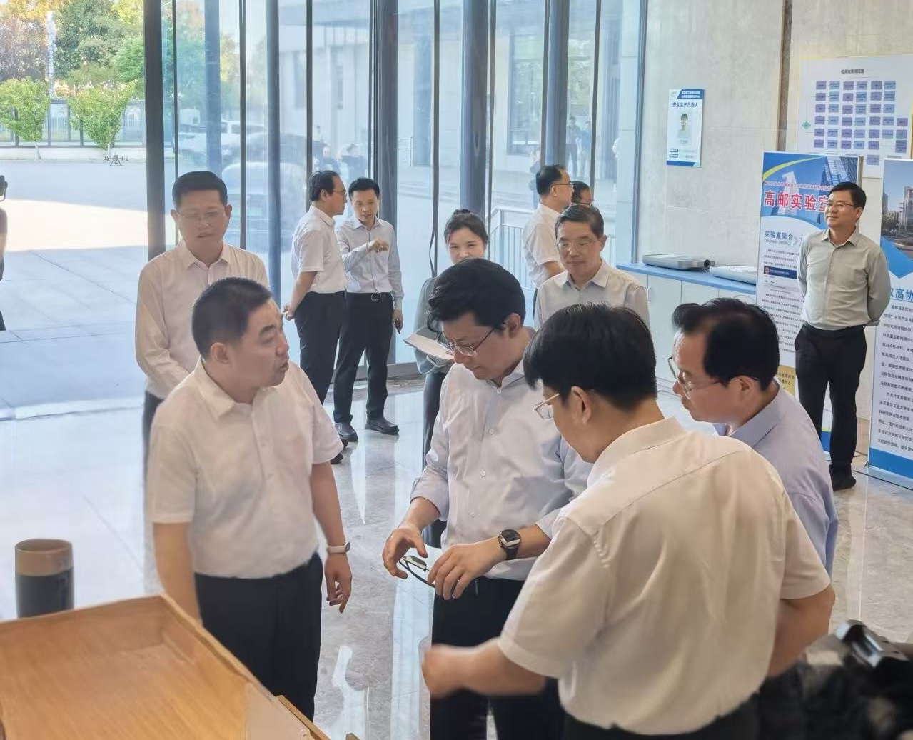 10月10日,扬州市委书记王进健至电光源材料研究所国家轻工业电光源材料质量监督检测中心高邮实验室开展调研。扬州市委副书记、秘书长焦庆标,扬州市副市长罗雪明,高邮市委书记田醒民,高邮市委常委、高新区党工委书记马舟,高邮市副市长王汉东,高新区管委会主任王荣山等陪同调研。